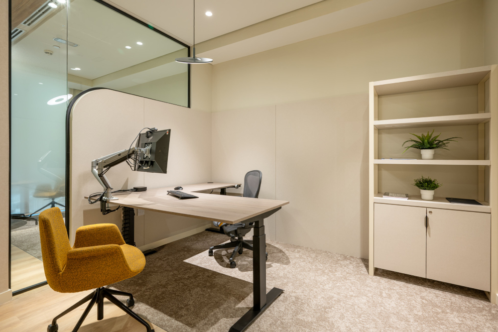 From the collaborative work zones to the breakout café and meeting areas, the design encourages interaction and focus in equal measure. Clean lines, acoustic comfort, and biophilic accents come together to form an environment that’s both professional and inviting — a modern workspace crafted for people and productivity.