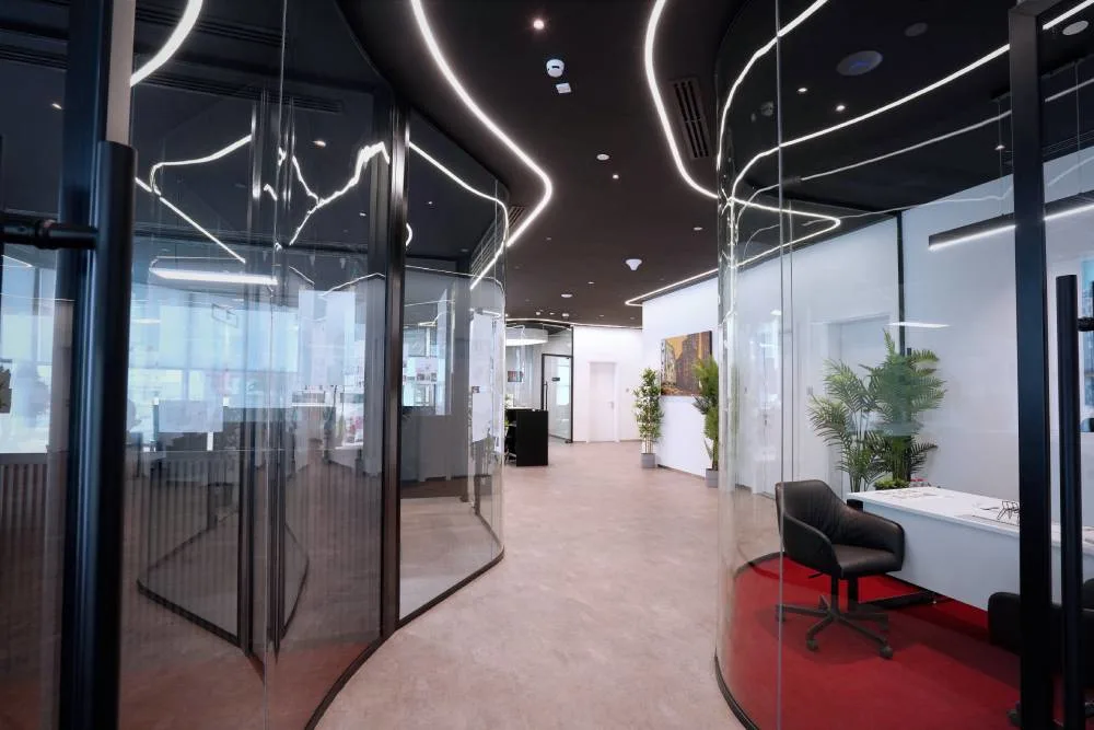 Our designs emphasize clarity, balance, and sophistication. From executive zones and meeting areas to breakout cafés and collaborative workspaces, every detail, whether textured glass supports, green marble coffee stations, or biophilic accents, is crafted to reflect precision and contemporary style. Clean lines, tactile finishes, and thoughtful material contrasts define our approach, ensuring offices are both professional and welcoming.